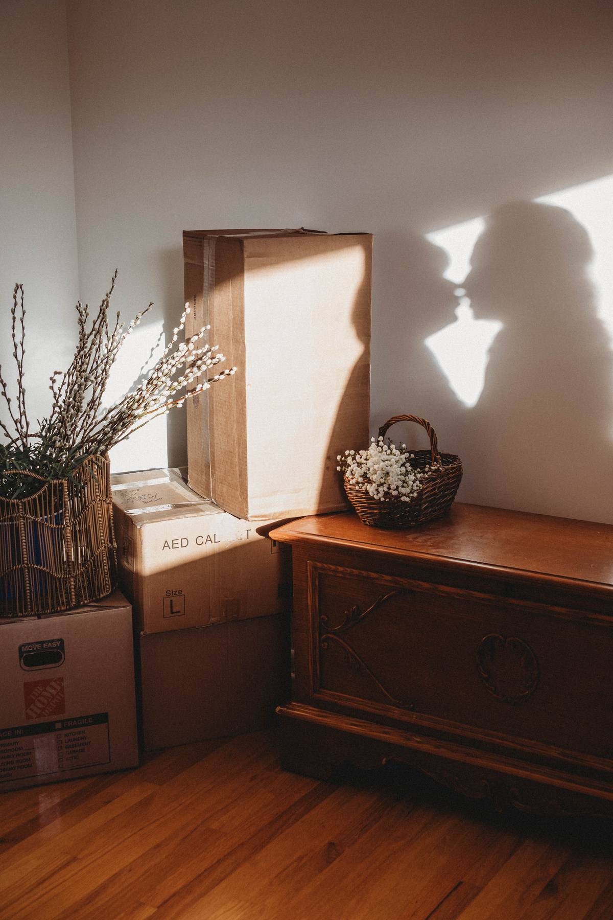 Another room embraced the reality of transition with stacked moving boxes and more plants. This space told the story of right now. Not finished. Not polished. Just real.