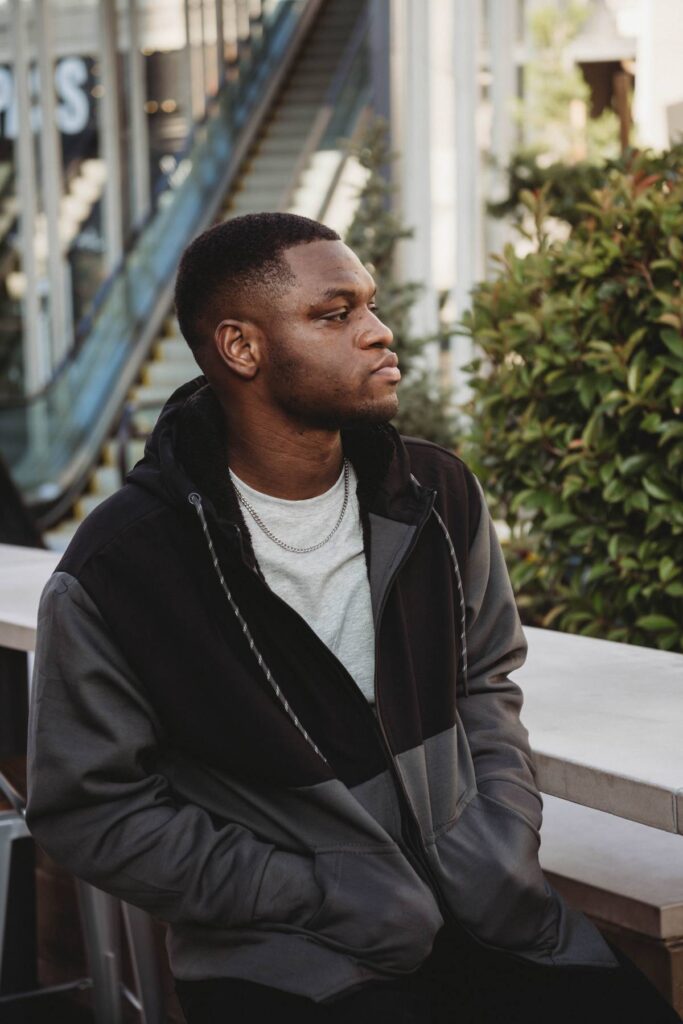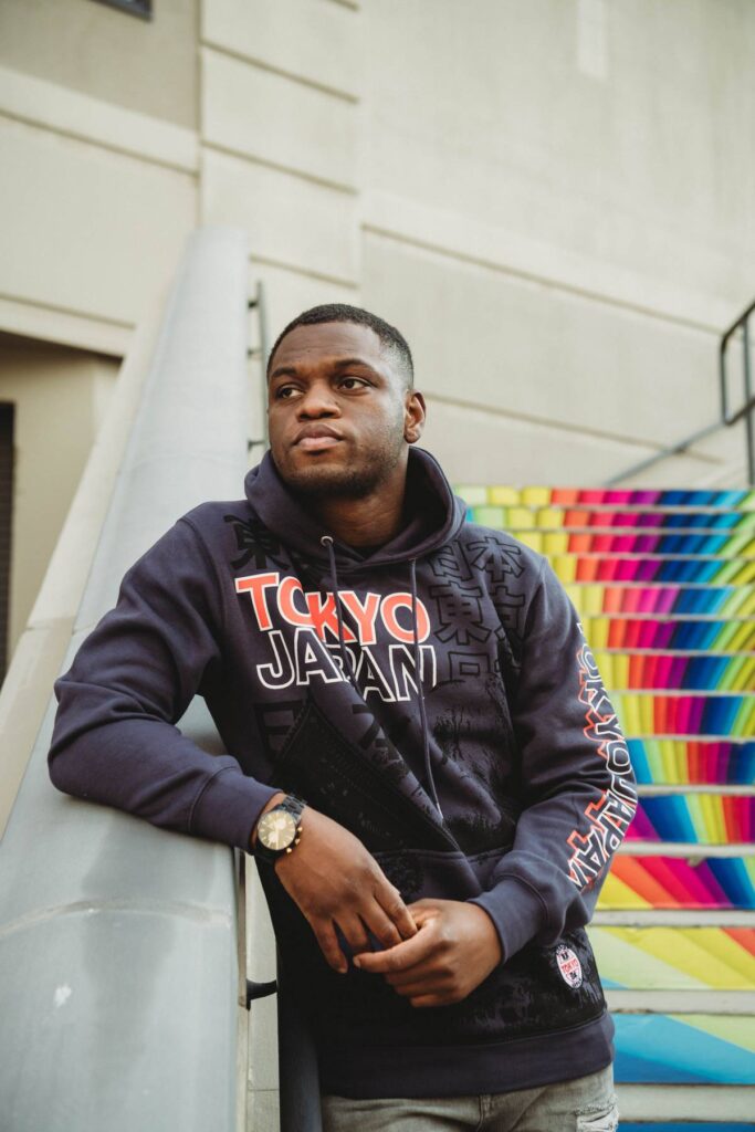 Troy came with three looks so we could showcase different slices of who he is. For his casual look, we used shaded pathways and street art to create approachable, everyday-style portraits.